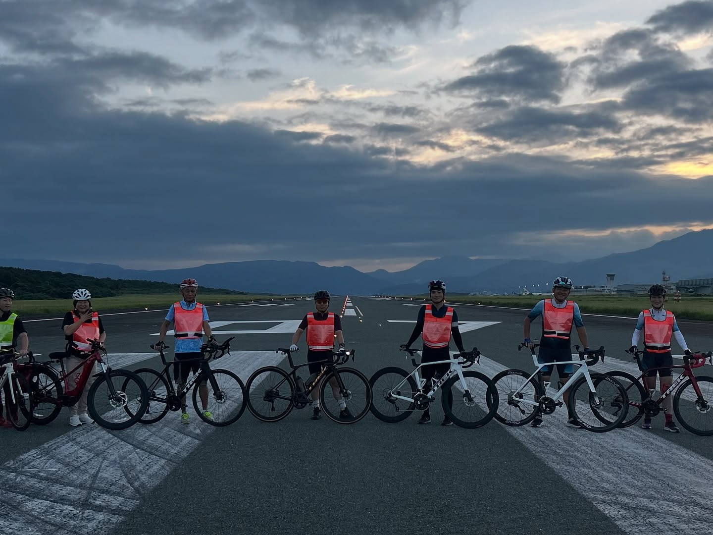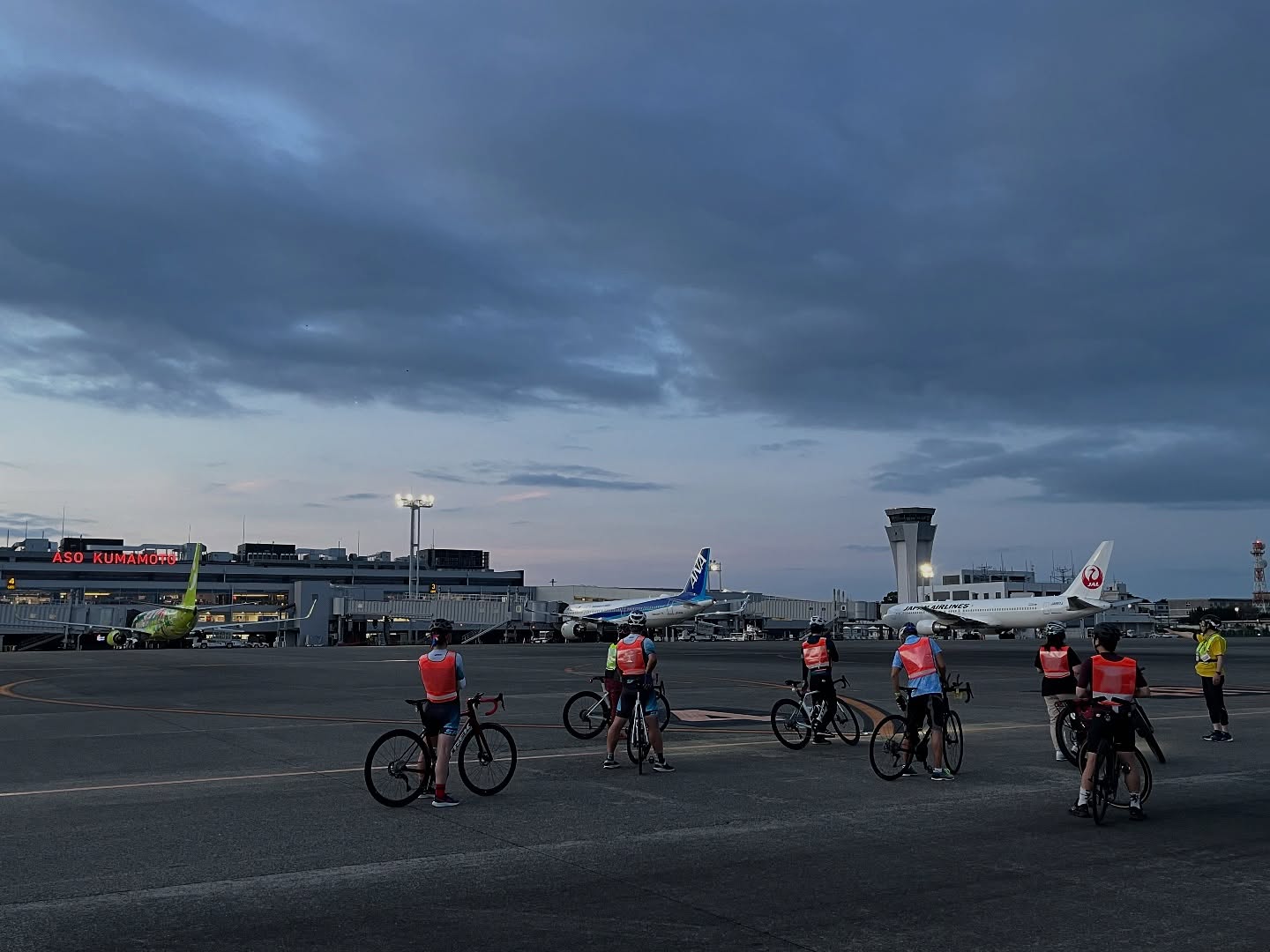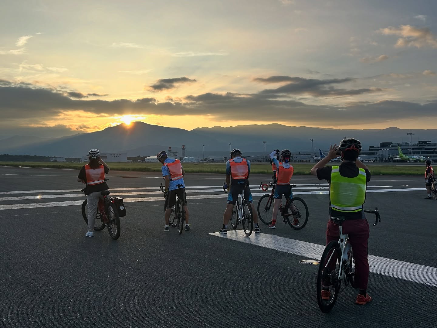 大型機が離発着する全長3000m、高低差12mのランウェイを風を切って駆け抜ける最高のライドとなりました。