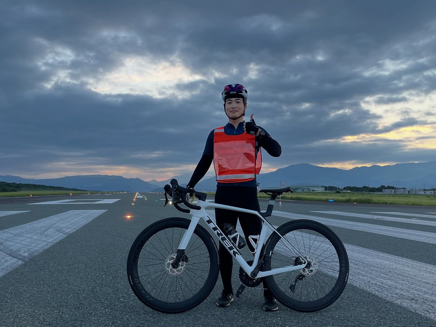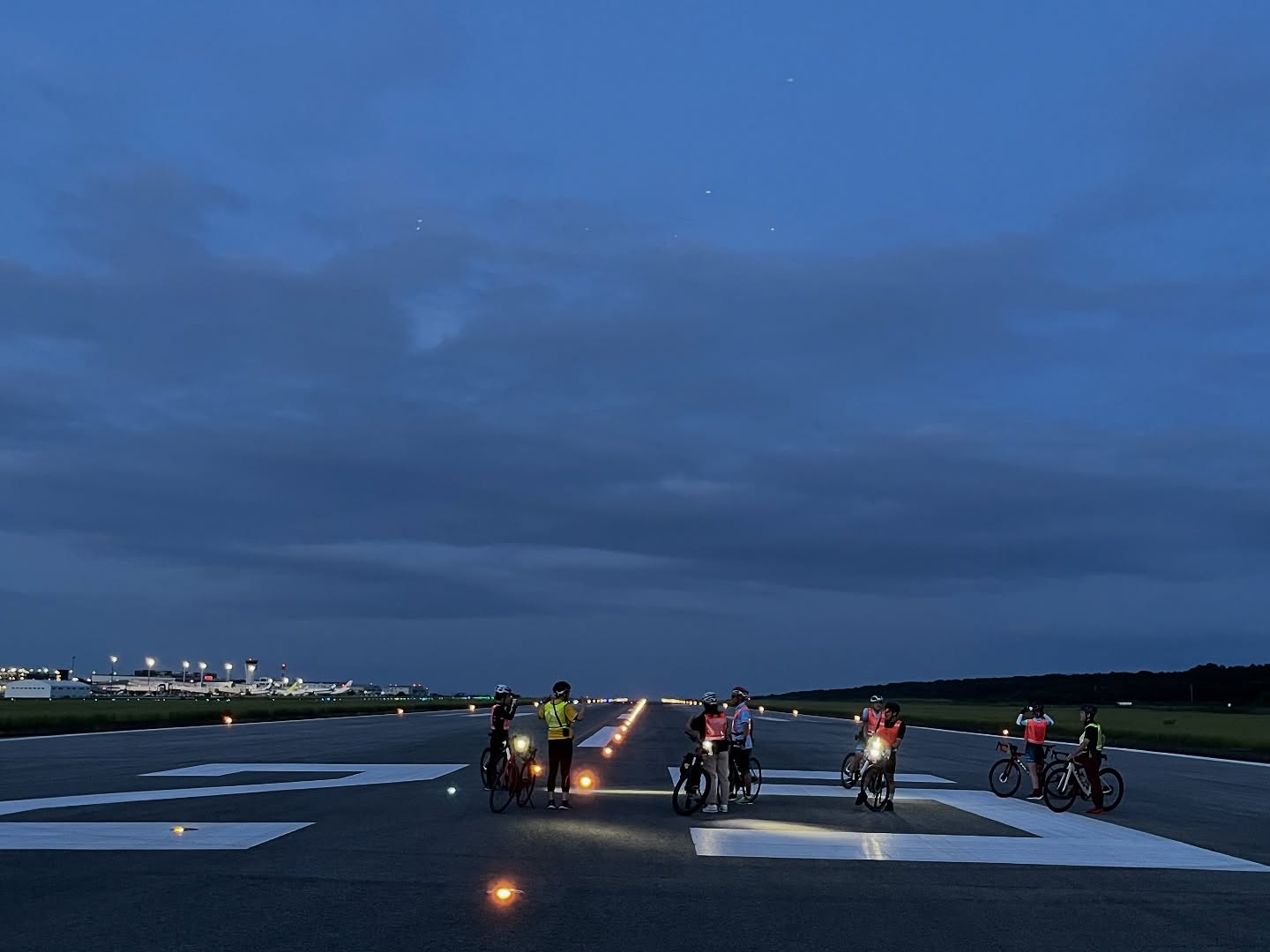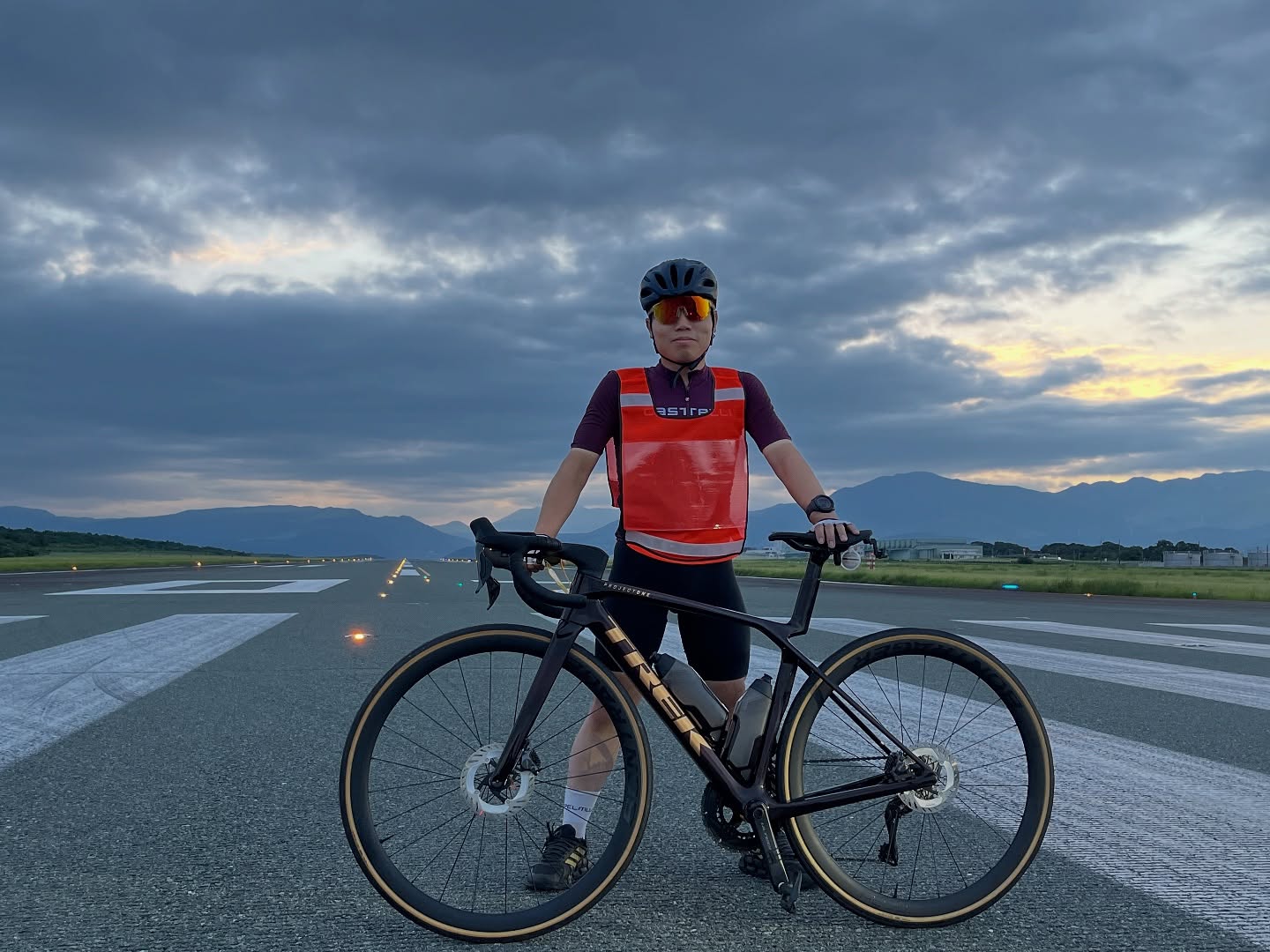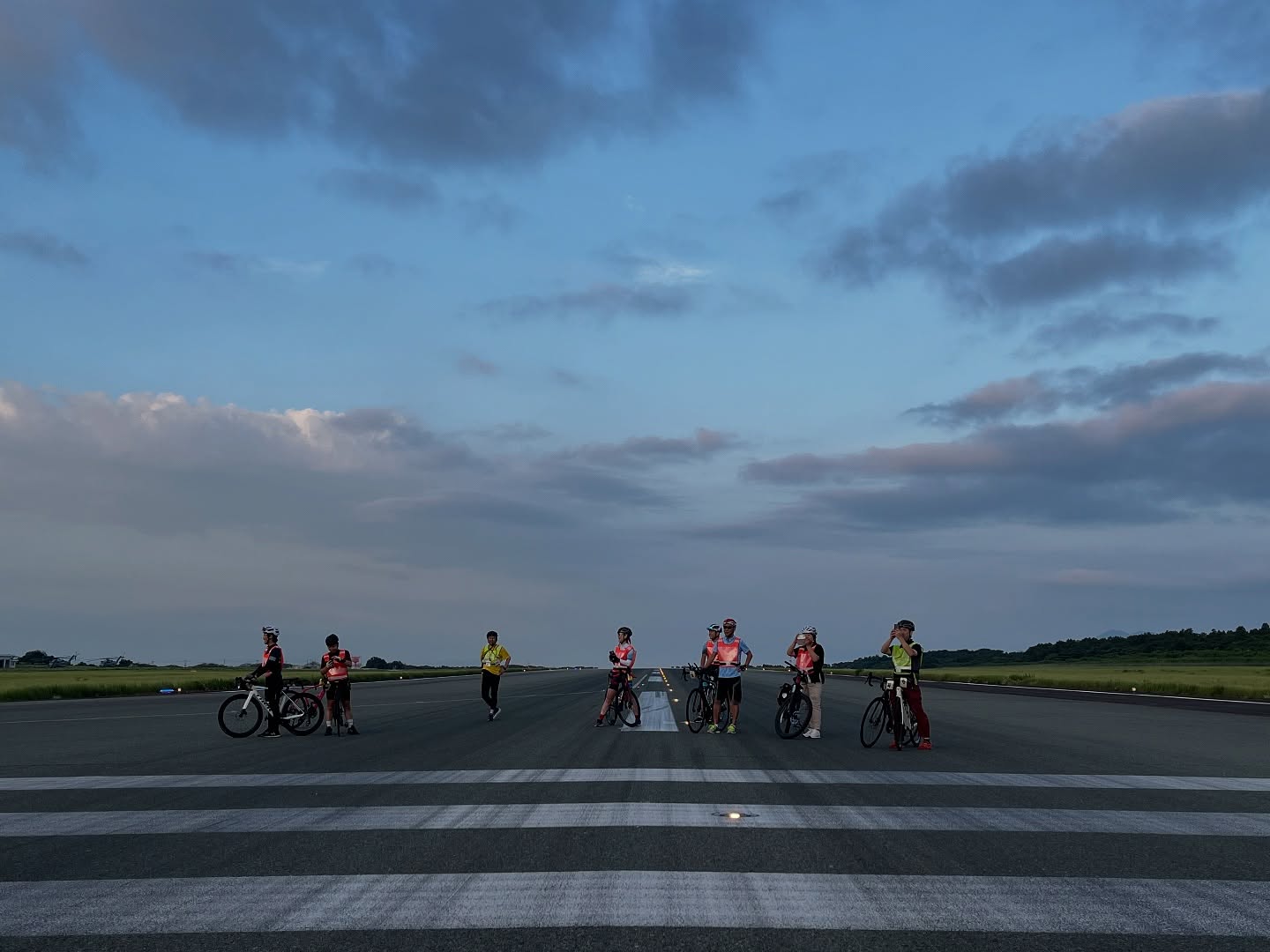 大型機が離発着する全長3000m、高低差12mのランウェイを風を切って駆け抜ける最高のライドとなりました。